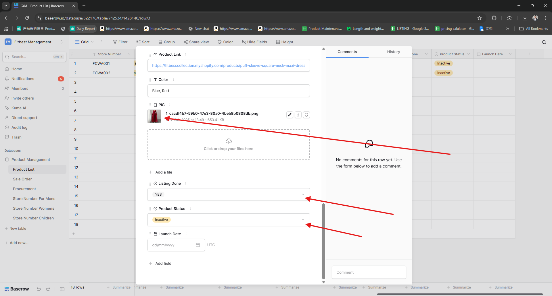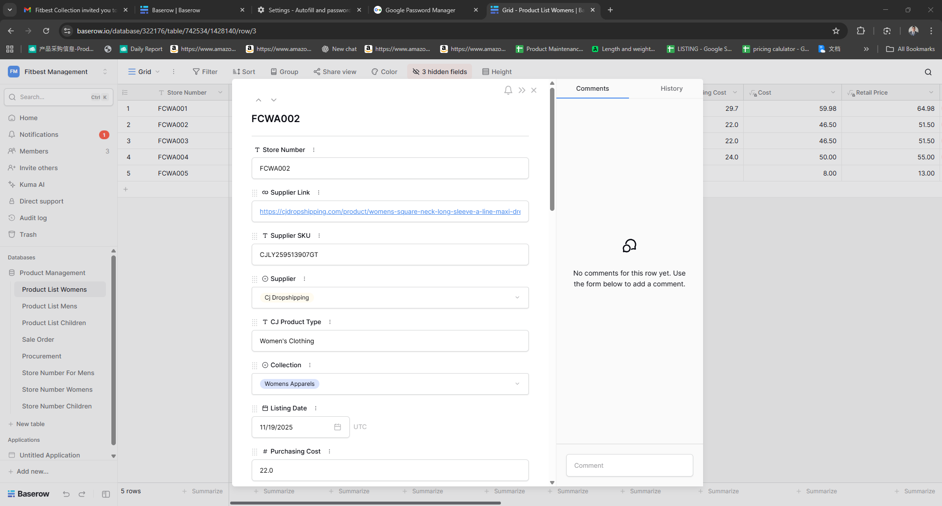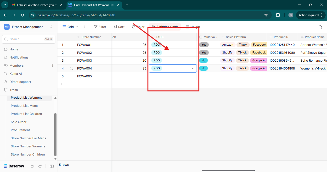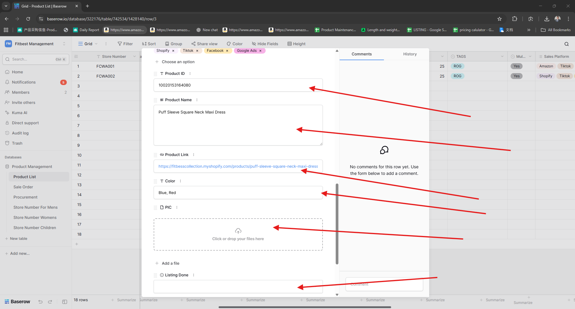 Get the Product ID, Product name and Product LInk Paste it to your Baserow