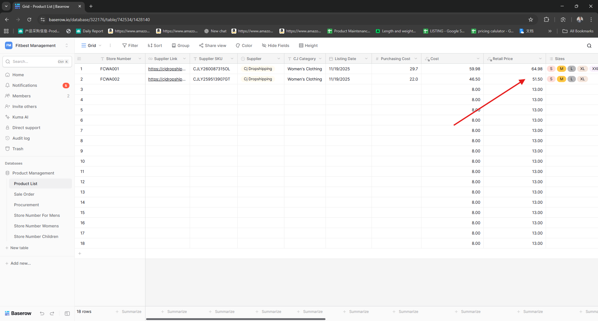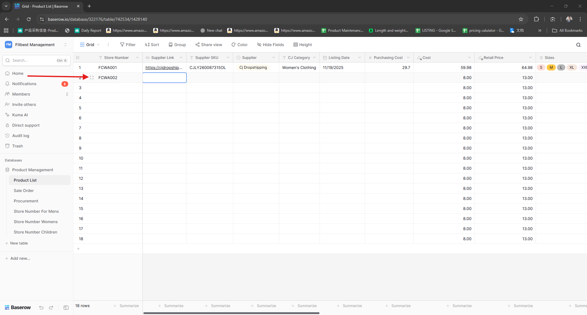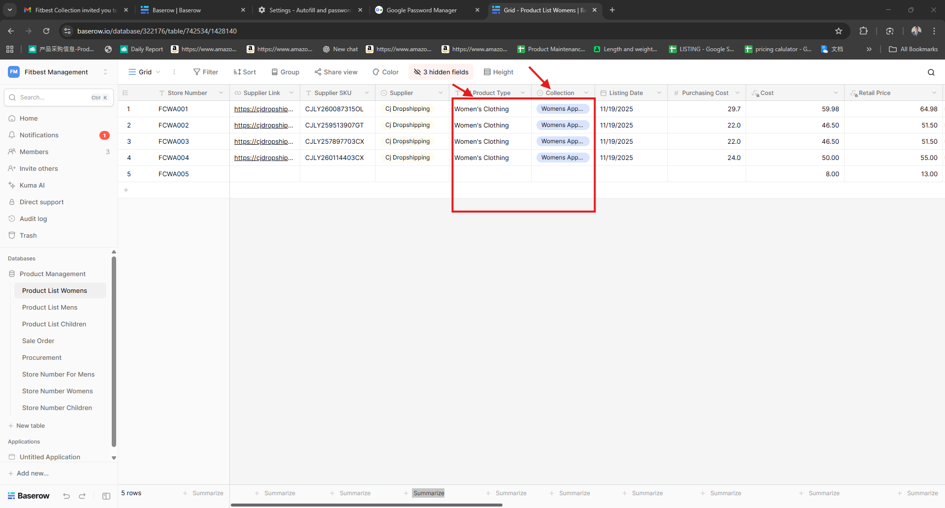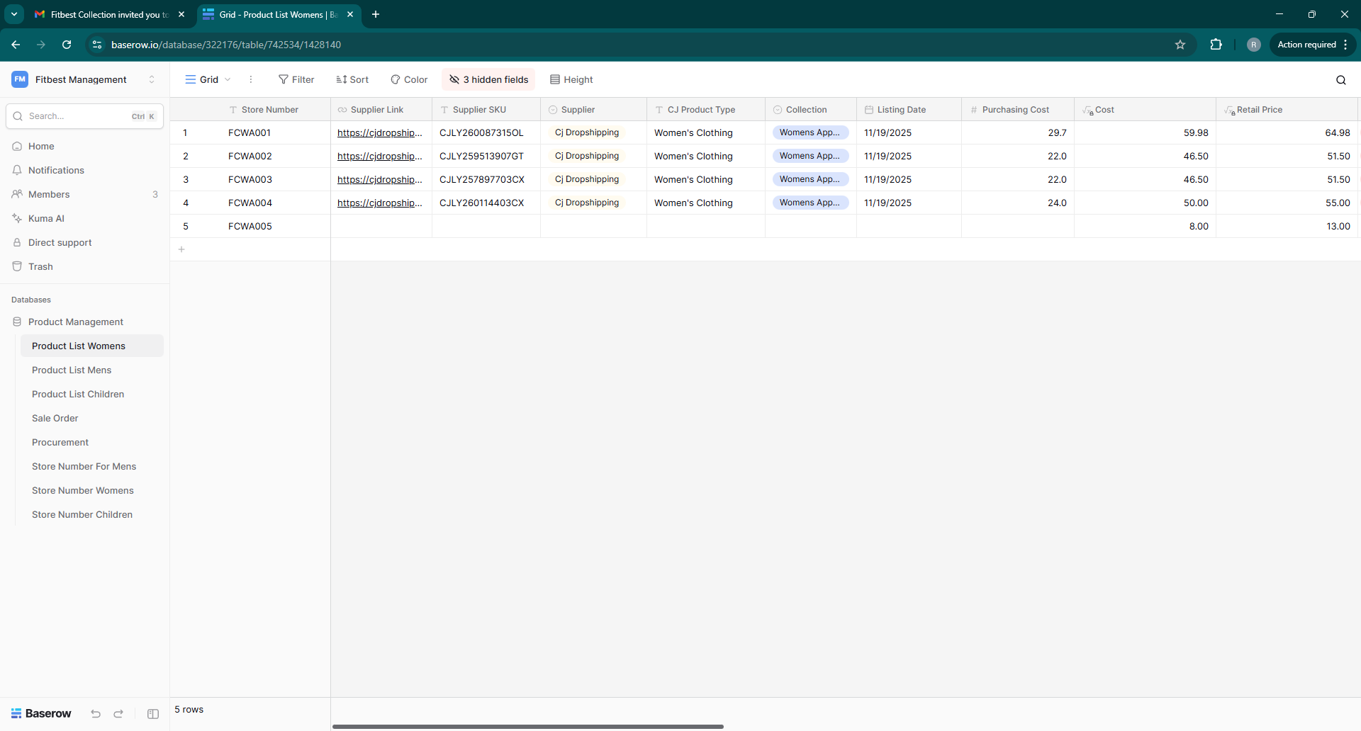 Get the Product ID, Product name and Product LInk Paste it to your Baserow