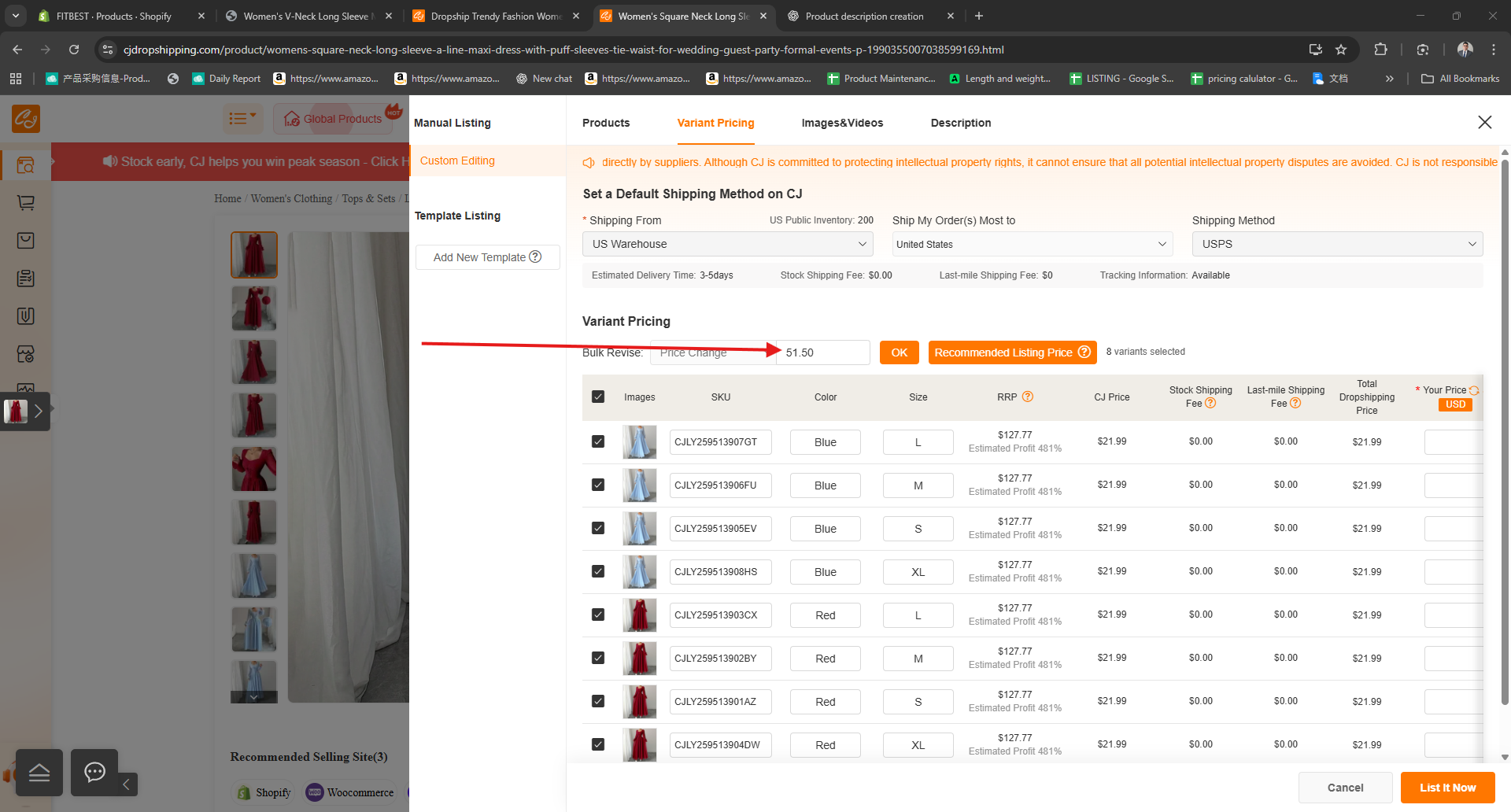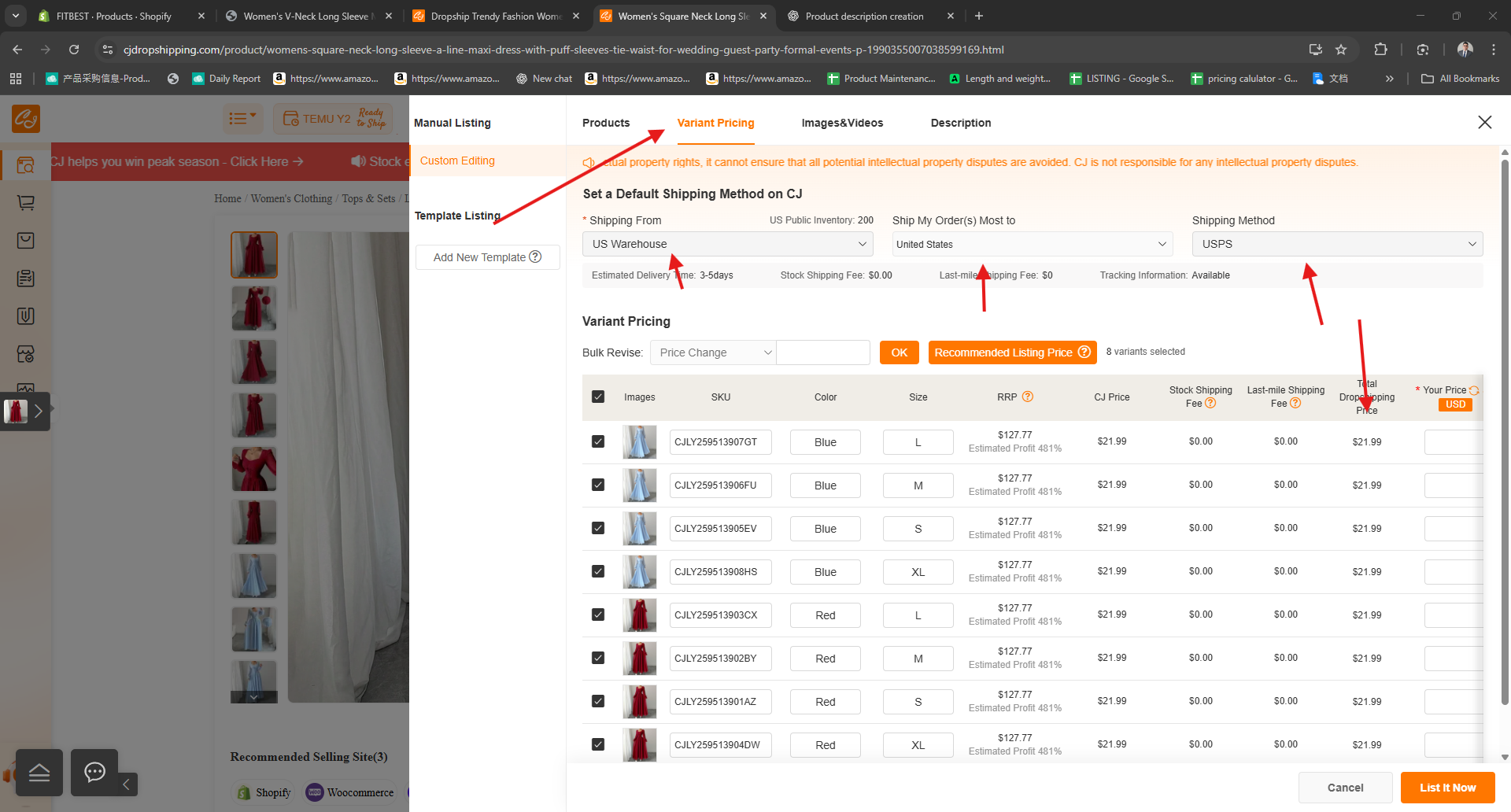 Open Cj Drop Shipping and find a Best Product To find always check if your SHIP FROM is located To United States Find Product and Open the Product you want to List
